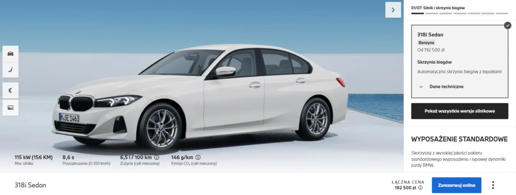 Do wyliczeń przyjmować będę ceny aut z konfiguratorów danej marki. Te są ogólnodostępne dla każdego. Na stronie producenta możemy skonfigurować sobie auto względem swoich indywidualnych potrzeb oraz możemy poznać cenę auta. W moim zestawieniu pod uwagę wezmę cenę najtańszej wersji takiego pojazdu oraz najdroższej możliwej konfiguracji danego modelu. Na potrzeby wyliczeń pomijam kwestie związane z ewentualnymi rabatami czy upustami. Co ciekawe na początku 2023 roku zdarzają się wyprzedaże. A i pod uwagę biorę tylko auta z rocznika 2023.